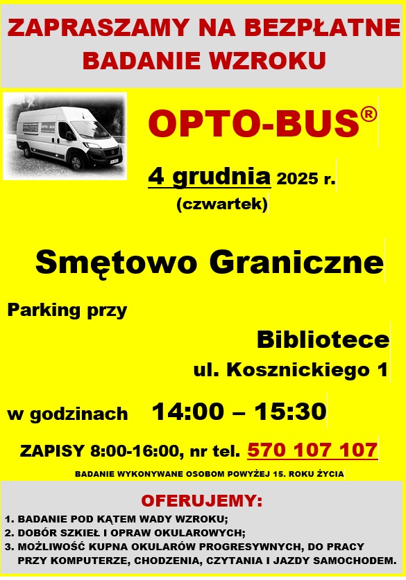 informujemy, że 4 grudnia ponownie przeprowadzone zostanie bezpłatne badanie wzroku dla mieszkańców.